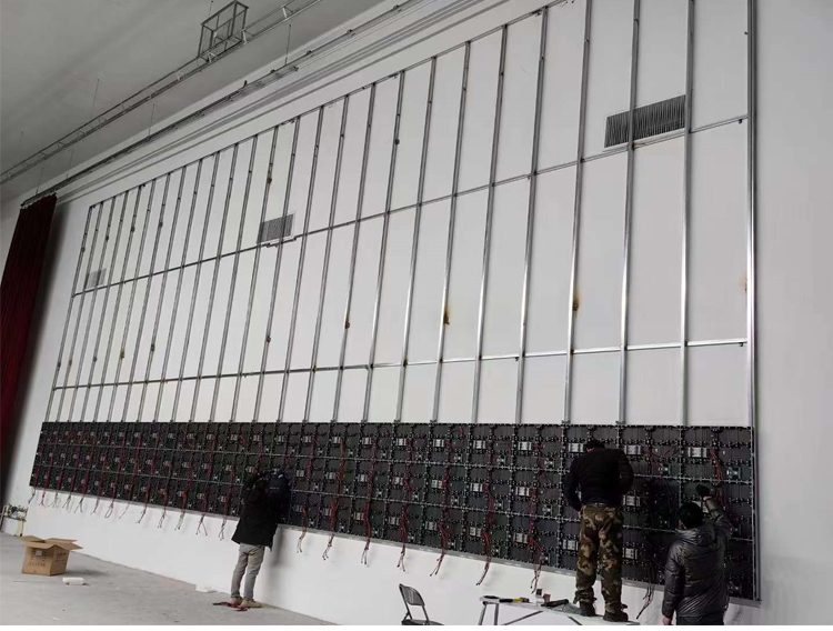 客戶采購的多功能會議廳全彩LED屏,型號為:P1.5,我司技術(shù)安裝部門的小伙伴正在安裝當(dāng)中,期待安裝調(diào)試后的效果。