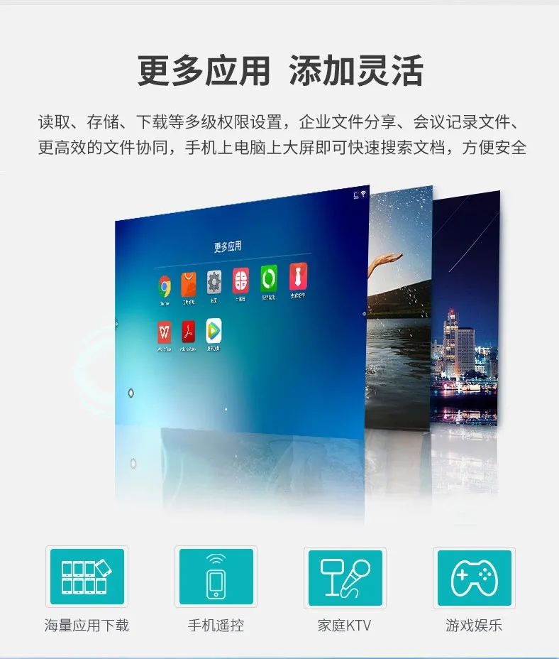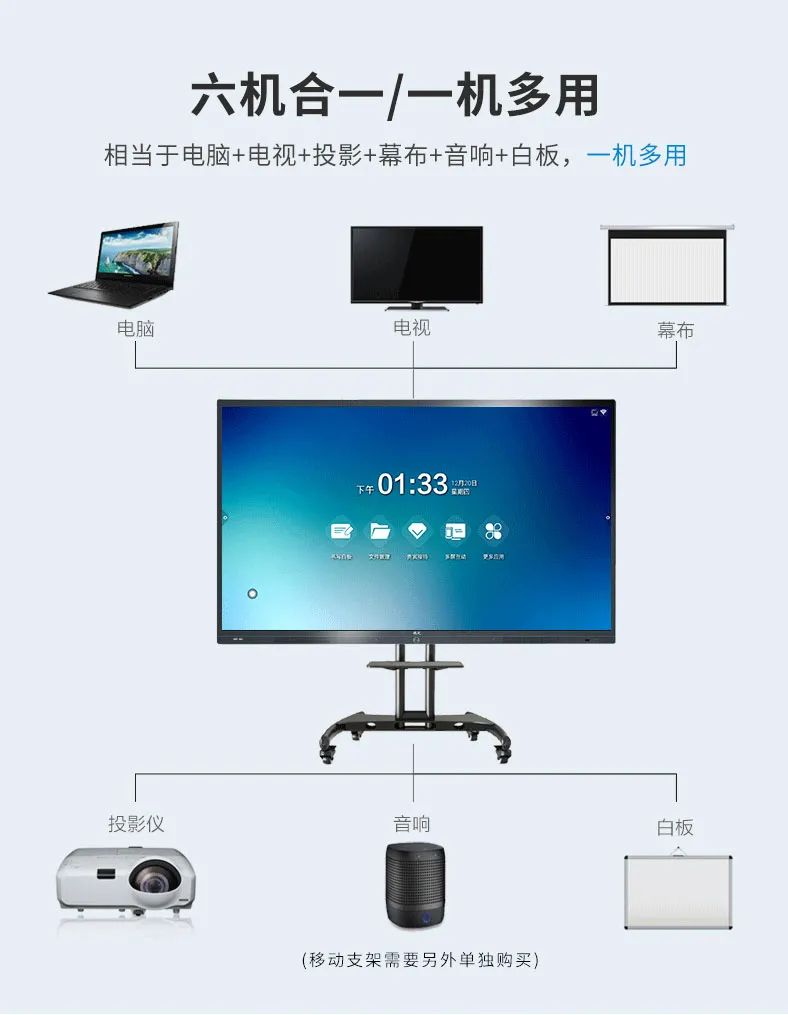 集成化,是會議平板的大的特點,相當于電腦+電視+投影+幕布+音響+白板,一機就能多用!